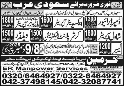Harmain Trade Test & Technical Training Center invites applications for job positions advertised in daily Express dated 6 December 2025 for following vacancies in Dammam, al khobar Saudi Arabia.