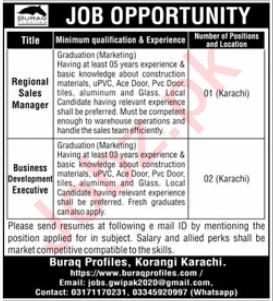 Buraq Profiles is looking for candidates for following posts as per job advertisement published in daily Jang Newspaper of June 2, 2024 for location Karachi, karachi Sindh Pakistan: