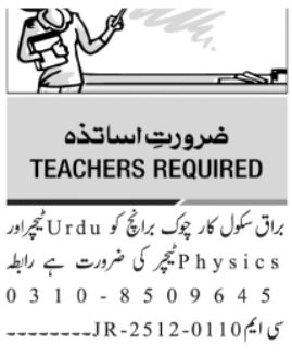 Buraq School & College latest Classifieds Teaching jobs and others can be applied till December 20, 2025 or as per closing date in newspaper ad. Read complete ad online to know how to apply on latest Buraq School & College job opportunities.