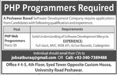 Buraq Technologies Premium Software House Peshawar Khyber Pakhtunkhwa KPK Pakistan invites applications from eligible candidates for the post of PHP Web Programmer as per advertisement of February 13, 2022 published in daily Jang Newspaper. Candidates with Bachelor and Master etc. educational background will be preferred.