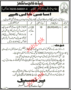 Bursar Job In Cadet College Sanghar
