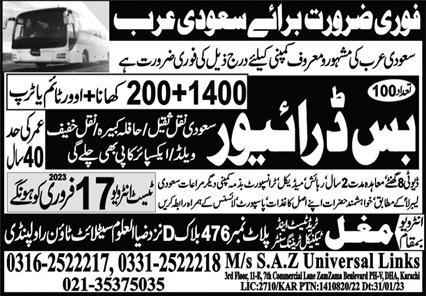 Mughal Trade Test & Technical Training Center Riyadh, madina Saudi Arabia invites applications from eligible candidates for the post of bus driver, htv driver and driver as per advertisement of February 16, 2023 published in daily Express Newspaper. Persons with Intermediate and Matric etc. education can apply.