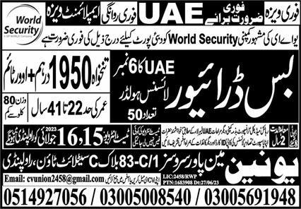 Union Manpower Services Sharjah, abu dhabi UAE invites applications from eligible candidates for the post of htv driver, bus driver and driver as per advertisement of July 14, 2023 published in daily Express Newspaper. Matric and Intermediate etc. educational qualification will be preferred.