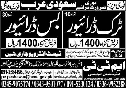 Apply at MTT International Agency latest Overseas jobs in Driving and departments before closing date which is around February 13, 2025 or as per closing date in newspaper ad. Read complete ad online to know how to apply on latest MTT International Agency job opportunities. Salary varies from 103000. Overtime is allowed. During job medical, accommodation and transport facility is available.