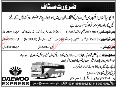 Bus Hostess, Bus Driver and Bus Denter Job Opportunity