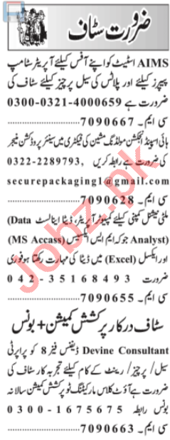 Apply as per details in job advertisement. Login to view further details of how to apply via https://www.jobz.pk online.
