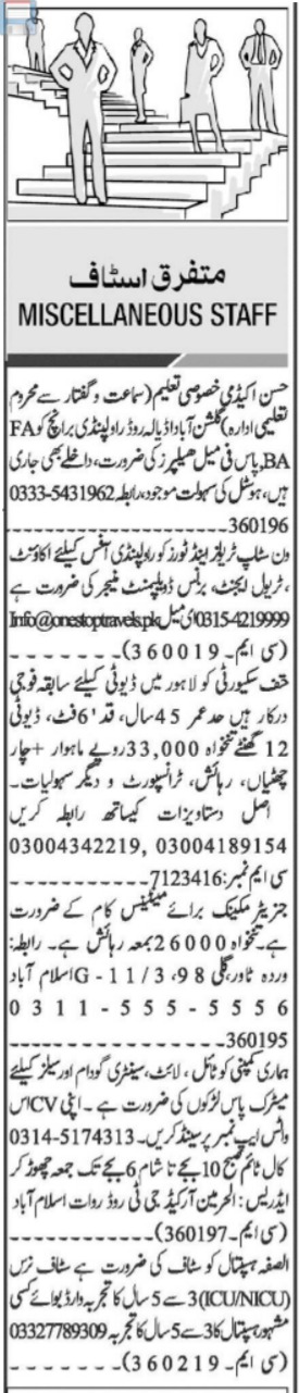 Private Company is looking for candidates for following posts as per job advertisement published in daily Jang Newspaper of September 30, 2022 for location Islamabad, rawalpindi Islamabad Pakistan:
