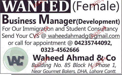 Business Development Manager is required in Waheed Ahmed & Co in lahore.