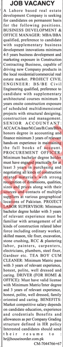 Latest Real Estate Development Company Management Posts Lahore 2025