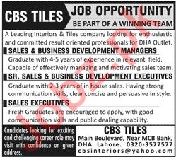 Latest CBS Tiles Business Staff Posts Lahore 2025