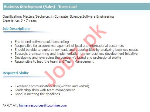 Business Development Sales Team Lead Job 2019