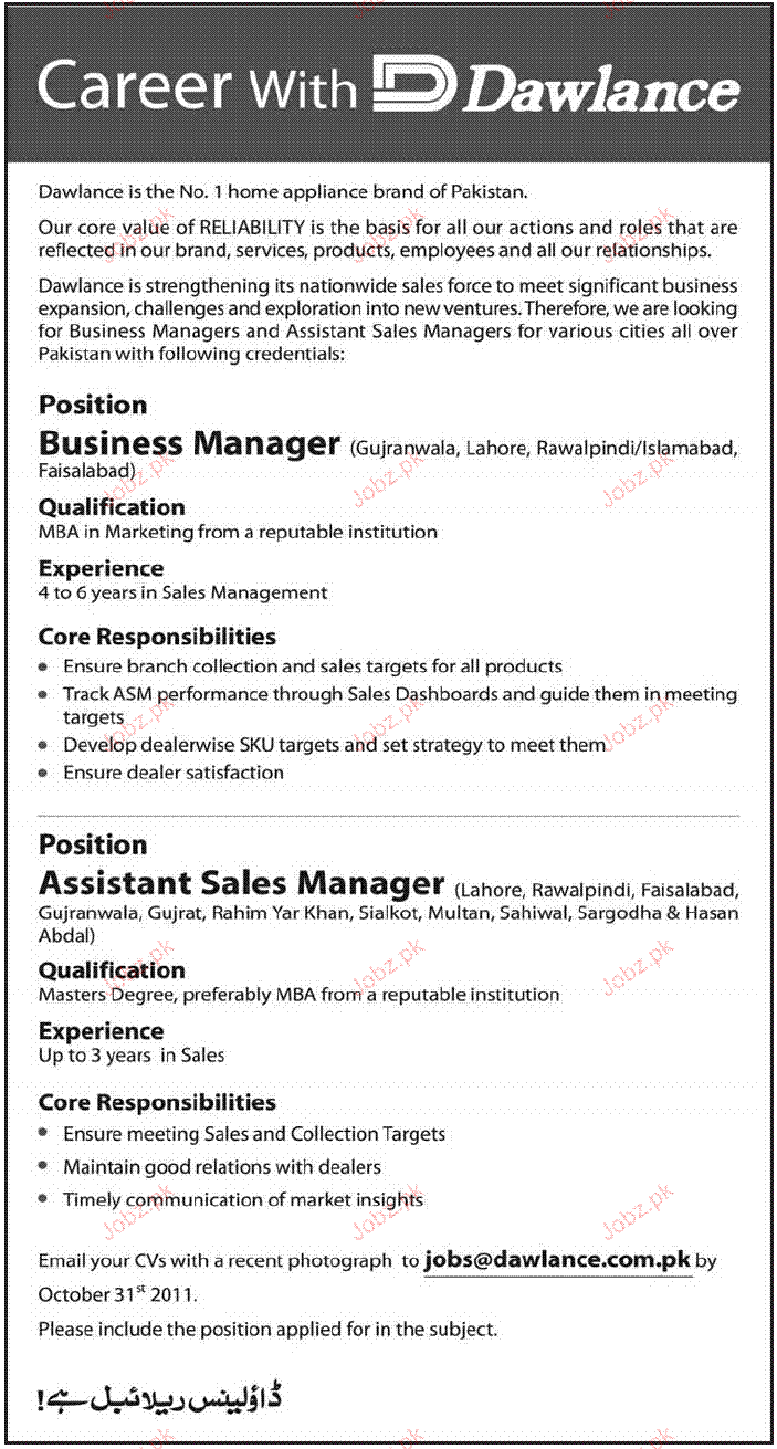 Apply as per details in job advertisement. Login to view further details of how to apply via https://www.jobz.pk online.