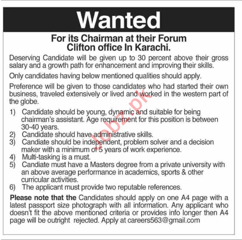Apply as per details in job advertisement. Login to view further details of how to apply via https://www.jobz.pk online.