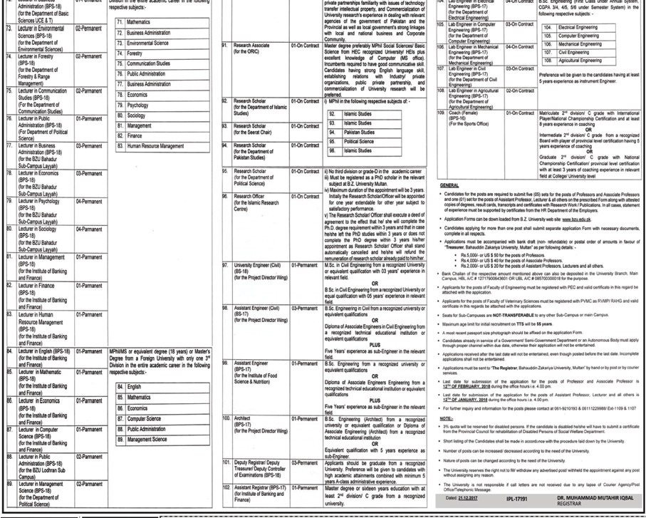 Apply as per details in job advertisement. Login to view further details of how to apply via https://www.jobz.pk online.