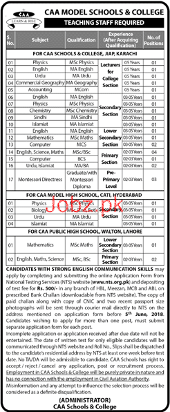 Latest CAA Model School & College Teaching Posts Karachi 2025