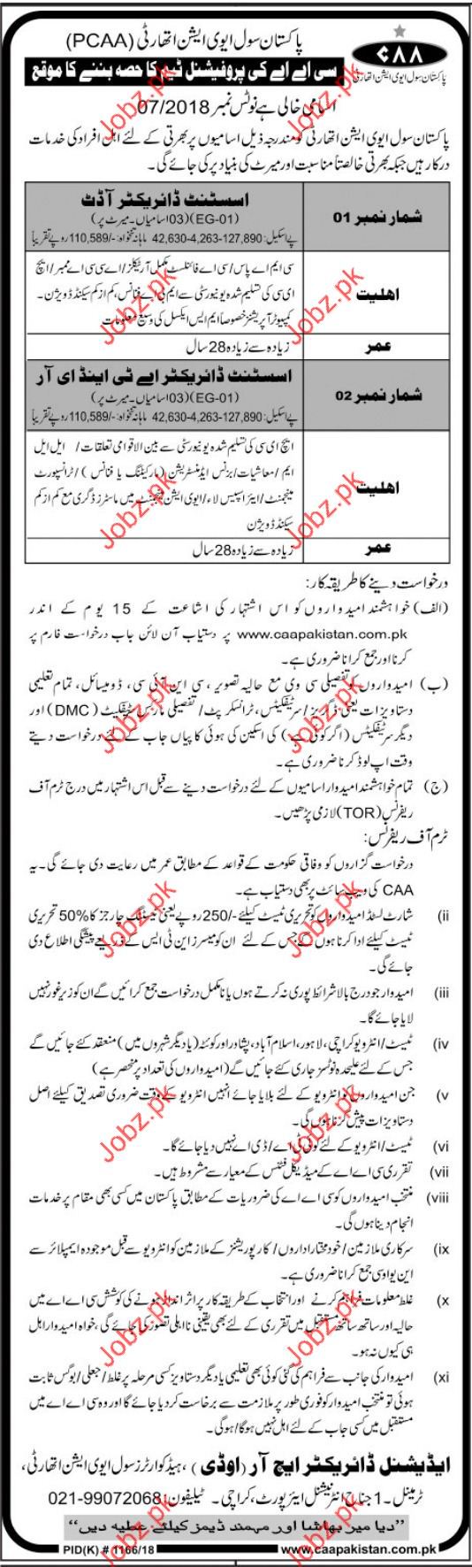 Vacancies in Pakistan Civil Aviation Authority CAA Advertisement October 2018