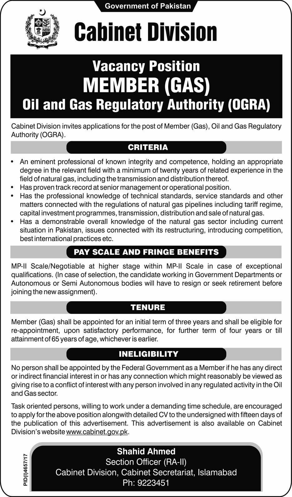 Cabinet Division Government Of Pakistan Members GAS Jobs