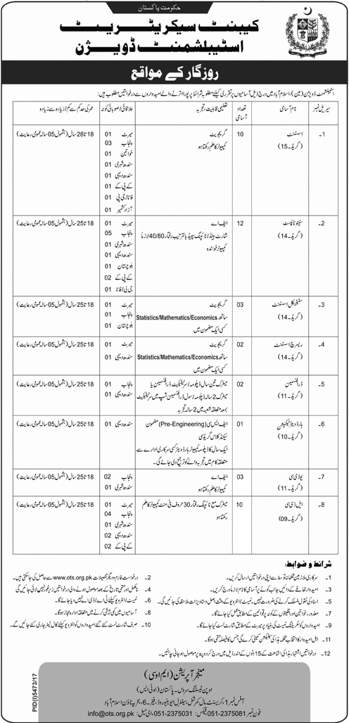 Latest Cabinet Secretariat Admin Clerical Posts Islamabad 2025