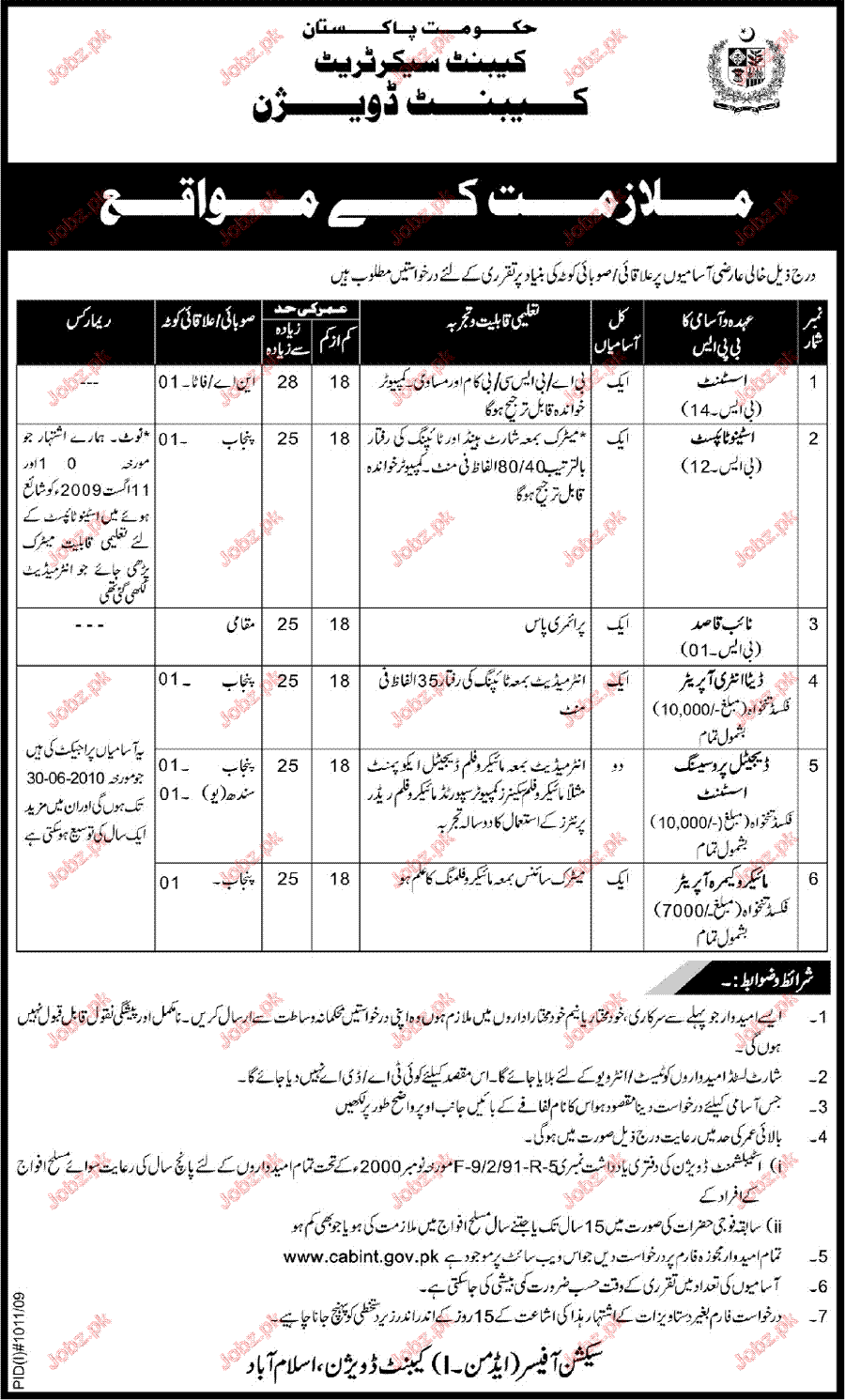 Latest Cabinet Secretariat Other Posts Islamabad 2025