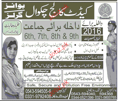 Cadet College Chakwal Admission in Class VI to IX in Chakwal. Read newspaper ad for exact details.