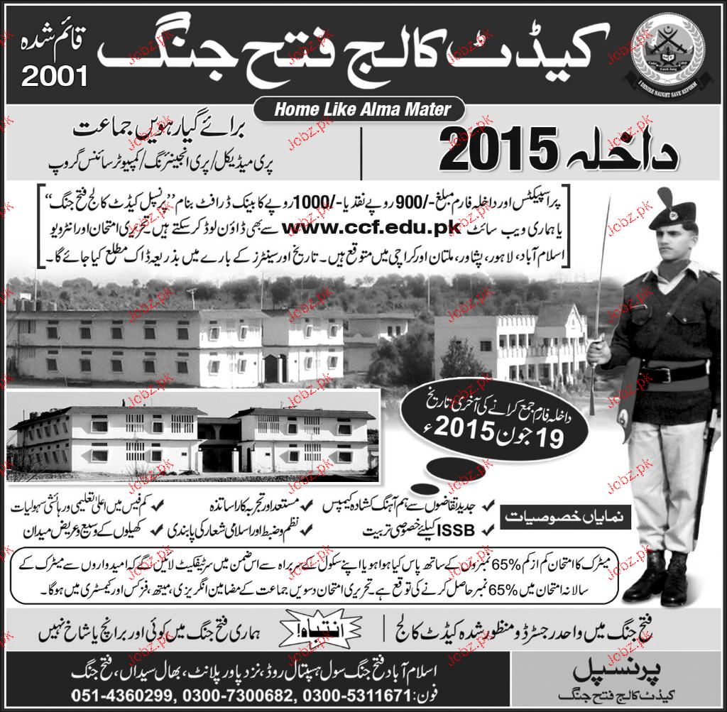 Cadet College Fateh Jang Admission on Class XI in Fateh Jhang. Read newspaper ad for exact details.