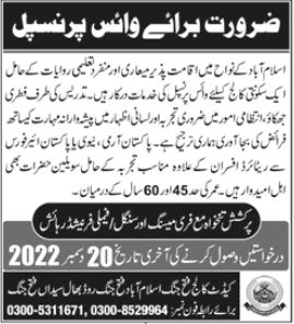 Vacant posts including principal are announced in Cadet College Fateh Jang Attock, attock Punjab Pakistan as per 30 November 2022 advertisement in daily Jang Newspaper. Persons with Bachelor, M.sc and Master etc. education can apply.