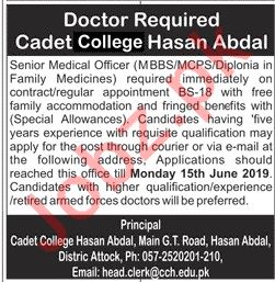 Cadet College Hasan Abdal Jobs 2019 For Medical Officers