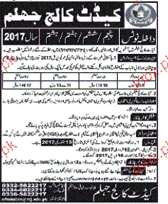 Cadet College Jhelum Admission in Class V to VIII in Jhelum. Read newspaper ad for exact details.