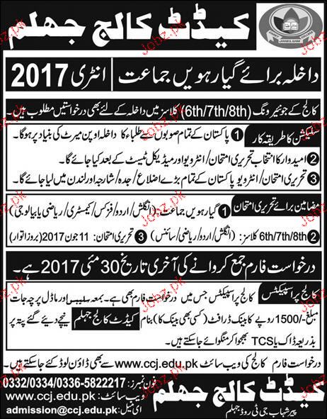 Cadet College Jhelum Admission in Class XI in Jhelum. Read newspaper ad for exact details.