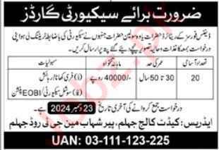 Vacant posts including security guard are announced in Cadet College Jhelum, jhelum Punjab Pakistan as per 8 December 2024 advertisement in daily Jang Newspaper. Preferred Education is Middle, Primary and Matric etc.