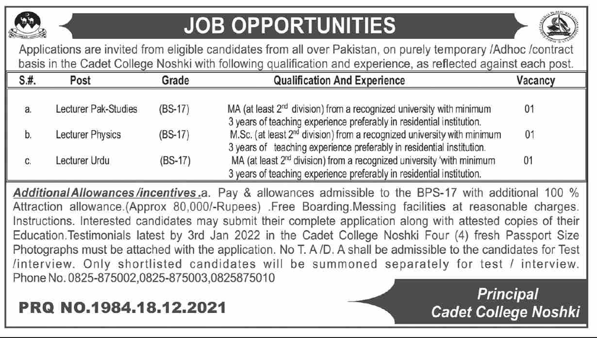 Apply as per details in job advertisement. Login to view further details of how to apply via https://www.jobz.pk online.