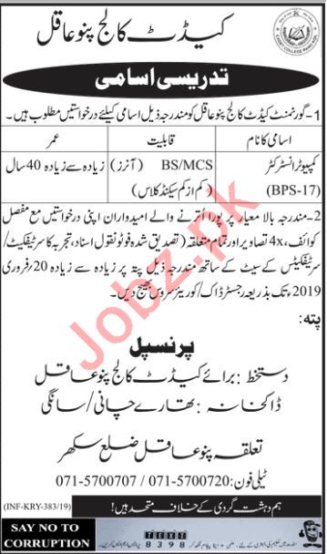 Latest Cadet College Computer Posts Pano Aqil 2025