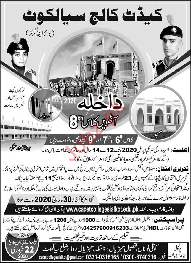 Cadet College Sialkot Boys & Girls Admissions 2020