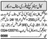 Vacant posts including call center agent and call center staff are announced in Call Center Lahore, lahore Punjab Pakistan as per 3 September 2024 advertisement in daily Khabrain Newspaper. Educational qualifications required Intermediate etc.