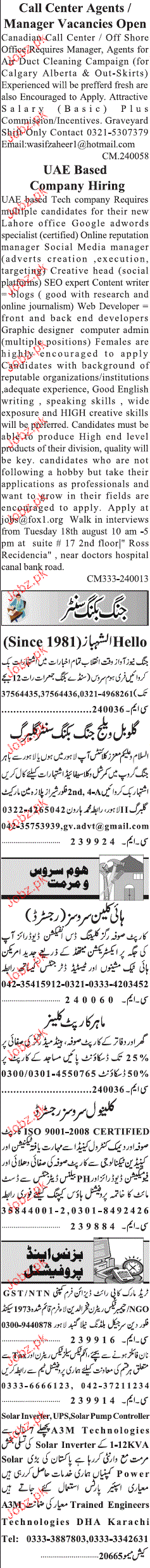 Latest Private Company Call Center Posts Lahore 2025