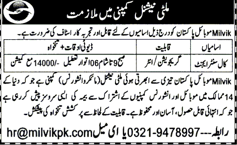 Latest Private Company Call Center Posts Lahore 2025