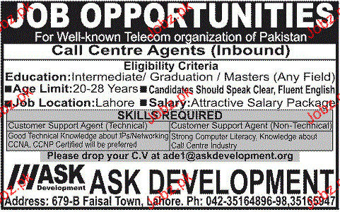Latest Private Company Call Center Posts Lahore 2025