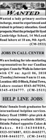 Apply as per details in job advertisement. Login to view further details of how to apply via https://www.jobz.pk online.