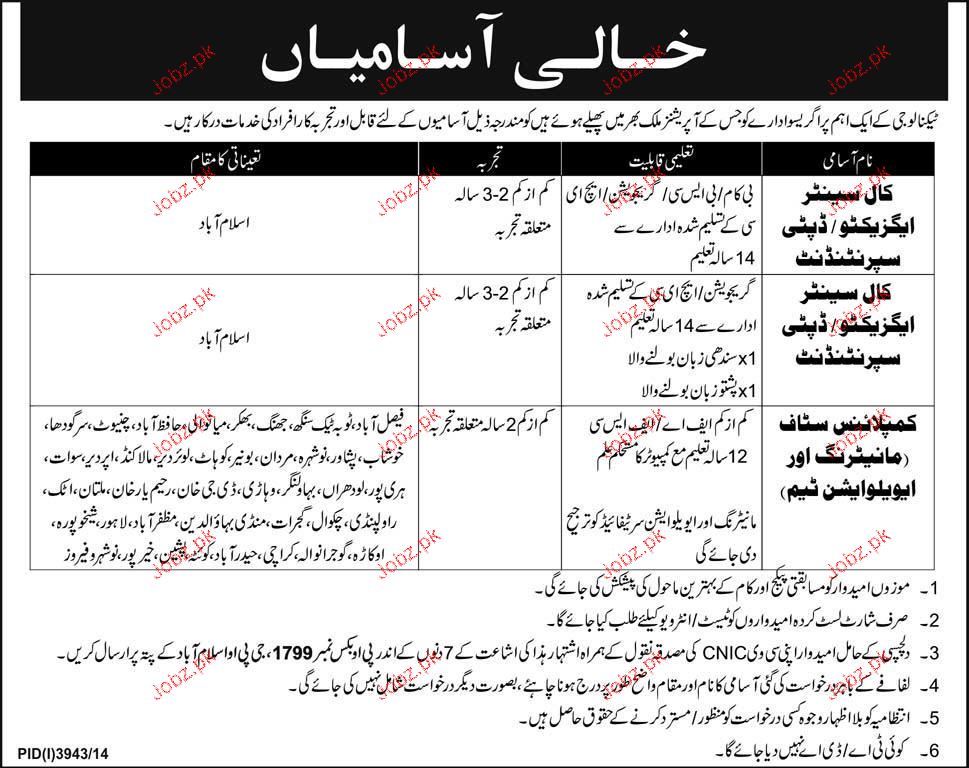 Apply as per details in job advertisement. Login to view further details of how to apply via https://www.jobz.pk online.