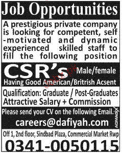 Latest Private Company Call Center Posts Rawalpindi 2025