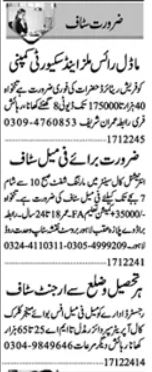 Private Company jobs advertisement dated about 17 December 2024 in daily Dunya Newspaper invites application for the vacant post of call operator, retired staff, office boy, manager, call center staff, clerk and supervisor in Lahore, lahore Punjab Pakistan. Candidates with Middle, Matric, Intermediate, Bachelor and Master etc. educational background will be preferred.