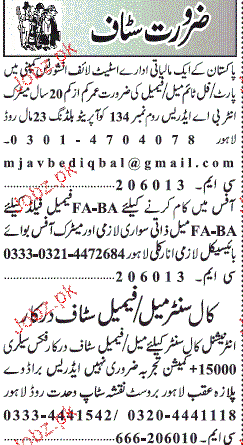 Call Center Staff required in Lahore.