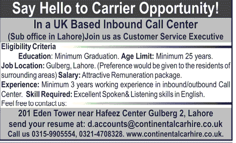 Latest Private Company Call Center Posts Lahore 2025