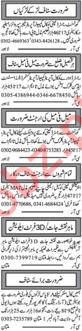 A well known companies located in Lahore and Multan needs candidates for the posts of Computer Operator, Call Operator, Assistant Manager, Branch Manager, Receptionist, HR Officer, Supervisor, Assistant Supervisor, Account Manager, Office Assistant, Call Center Staff, Lady Clerk and Sales Staff.
