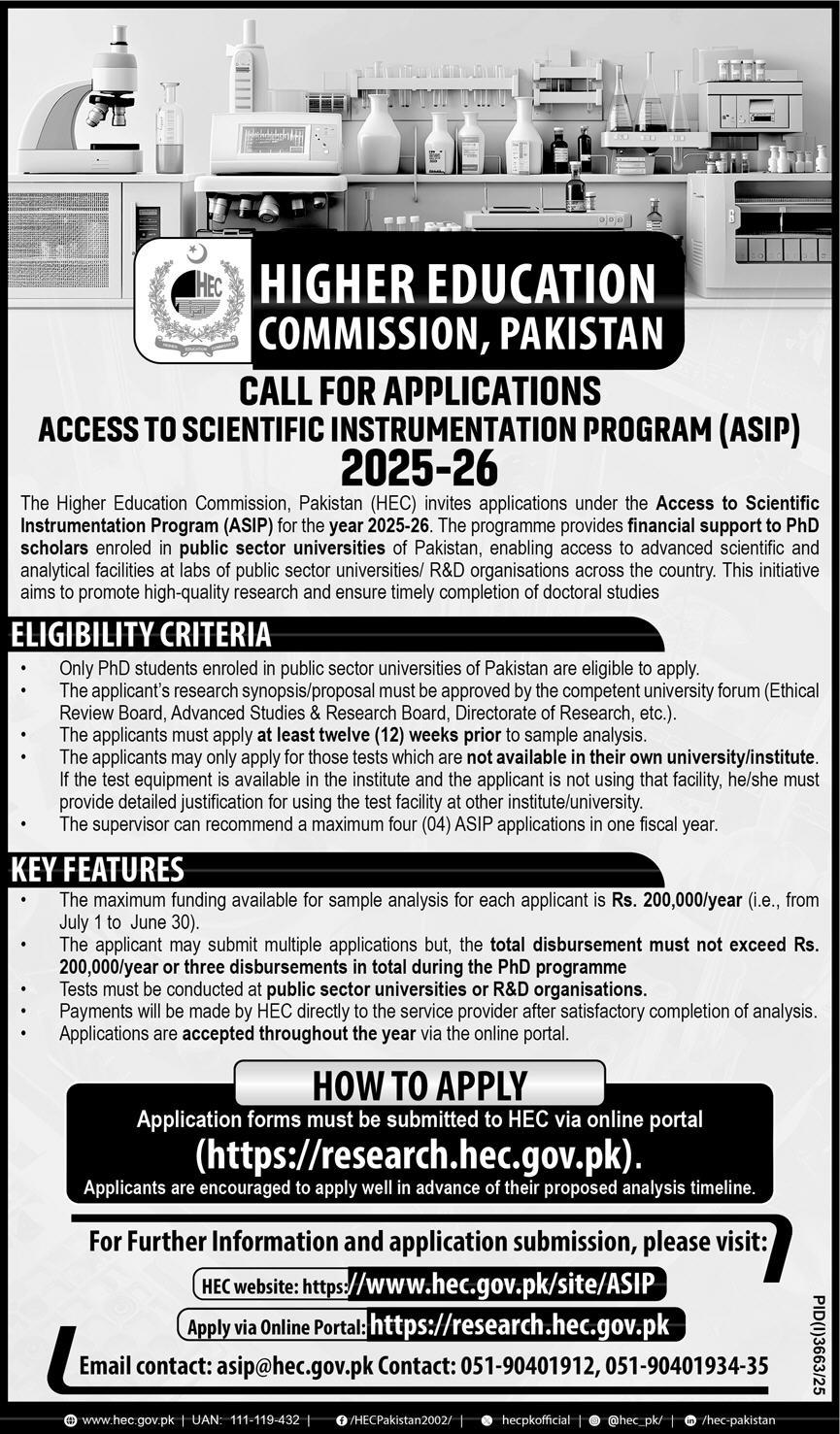 Higher Education Commission HEC jobs advertisement dated about 2 November 2025 in daily Express Newspaper invites application for the vacant post of scientific instrumentation program in Islamabad, islamabad Islamabad Pakistan. Candidates with Phd etc. educational background will be preferred.