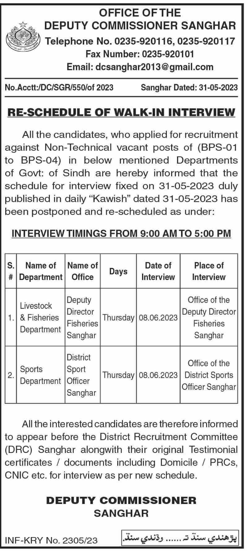 Deputy Commissioner Office is looking for candidates for following posts as per job advertisement published in daily Dawn Newspaper of June 2, 2023 for location Sanghar, sanghar Sindh Pakistan: