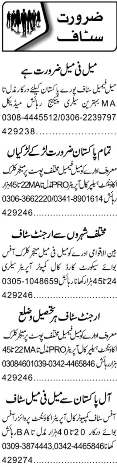 Preferred Education is Intermediate, Matric, Bachelor and Middle etc.