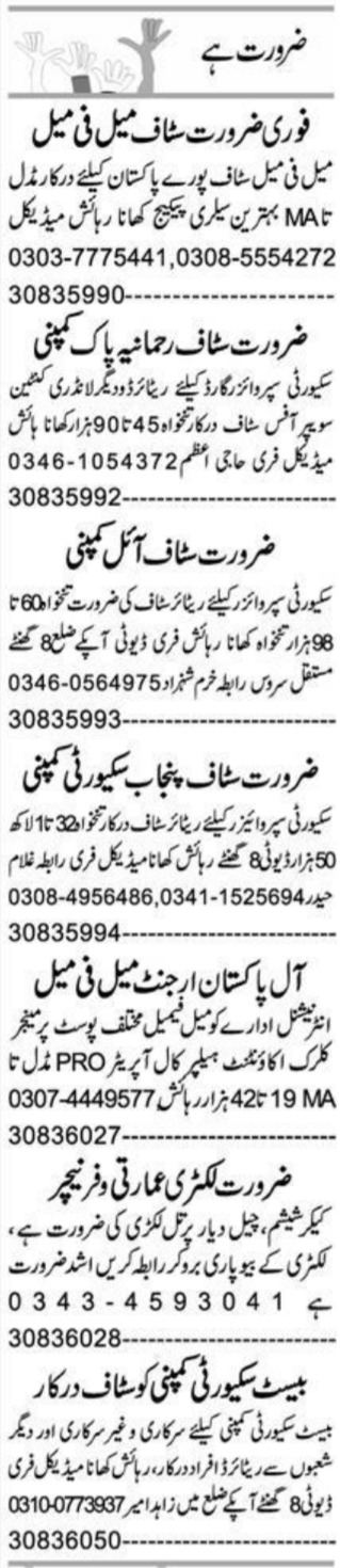 Vacant posts including male female staff, helper, pro, security guard, office staff, manager, accountant, sweeper, clerk, other staff, security supervisor and call operator are announced in Private Peshawar, peshawar Khyber Pakhtunkhwa KPK Pakistan as per 29 November 2022 advertisement in daily Express Newspaper. Preferred Education is Master, Matric, Middle, Bachelor and Intermediate etc.