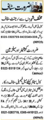 Private Company jobs advertisement dated about 6 January 2024 in daily Nawaiwaqt Newspaper invites application for the vacant post of supervisor, field worker, manager, call operator, clerk, salesman, cashier and call center staff in Lahore, lahore Punjab Pakistan. Candidates with Intermediate, Master, Middle, Bachelor and Matric etc. educational background will be preferred.