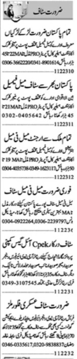 Private jobs advertisement dated about 11 February 2023 in daily Dunya Newspaper invites application for the vacant post of retired lance naik, security guard, retired subedar major, retired railway staff, retired air force staff, accountant, incharge, retired naib subedar, retired subedar, retired wapda staff, retired government staff, manager, male female staff, retired havaldar, other staff, retired education staff, call operator, management staff, office staff, helper, clerk, pro and security supervisor in Multan, multan Punjab Pakistan. Candidates with Middle, Master, Bachelor, Intermediate and Matric etc. educational background will be preferred.